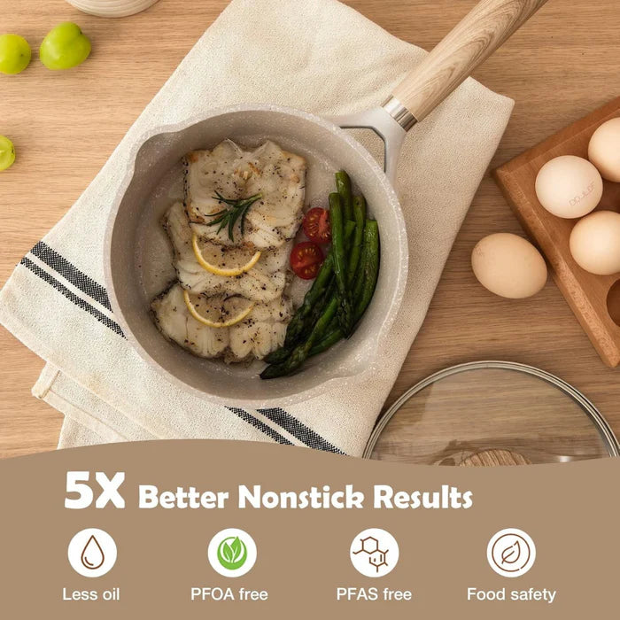 Superior Non-Stick Coating: Specially formulated stone-hardened non-stick surface ensures effortless food release, reduces oil usage, and makes cleaning quick and easy. HOMERO brings you safer and healthier cooking every day.