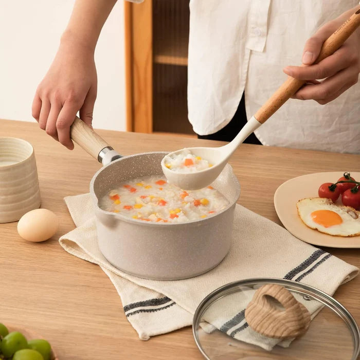 Smart Pouring Design: Designed with dual-sided drip-free spouts, this HOMERO milk pan makes pouring sauces, milk, or hot drinks clean and mess-free.